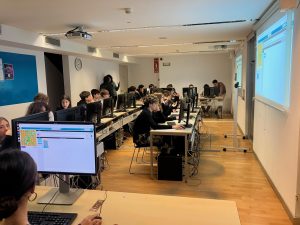 Durante l’incontro, gli studenti hanno approfondito l’utilizzo di Python per analizzare le somiglianze tra proteine di diverse specie, scoprendo come la bioinformatica aiuti a comprendere le relazioni evolutive.